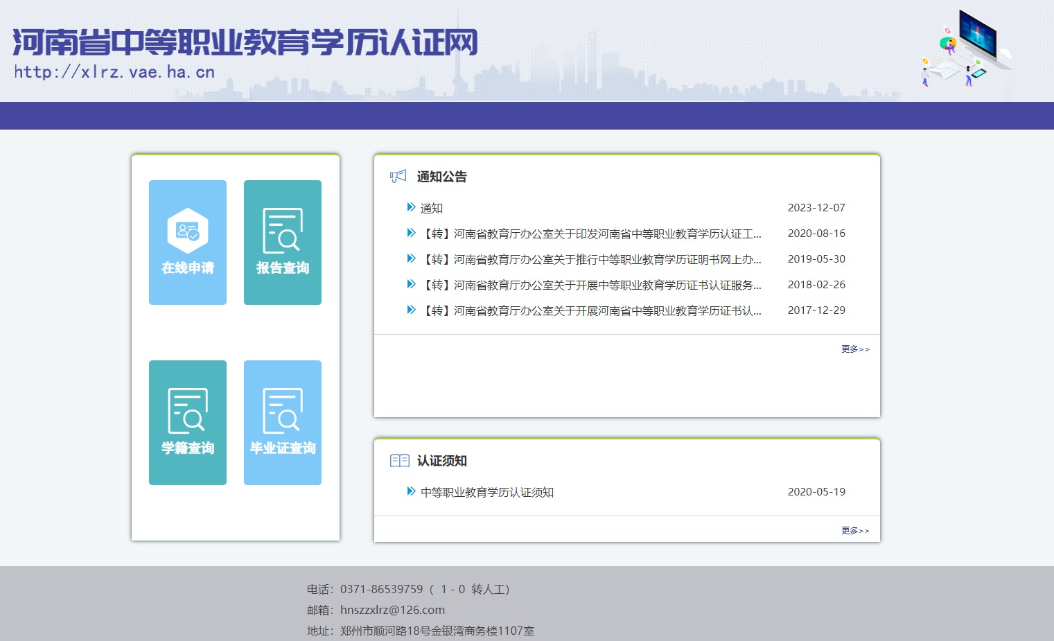 中专学历认证通过“河南省中等职业教育学历认证网”网上认证。