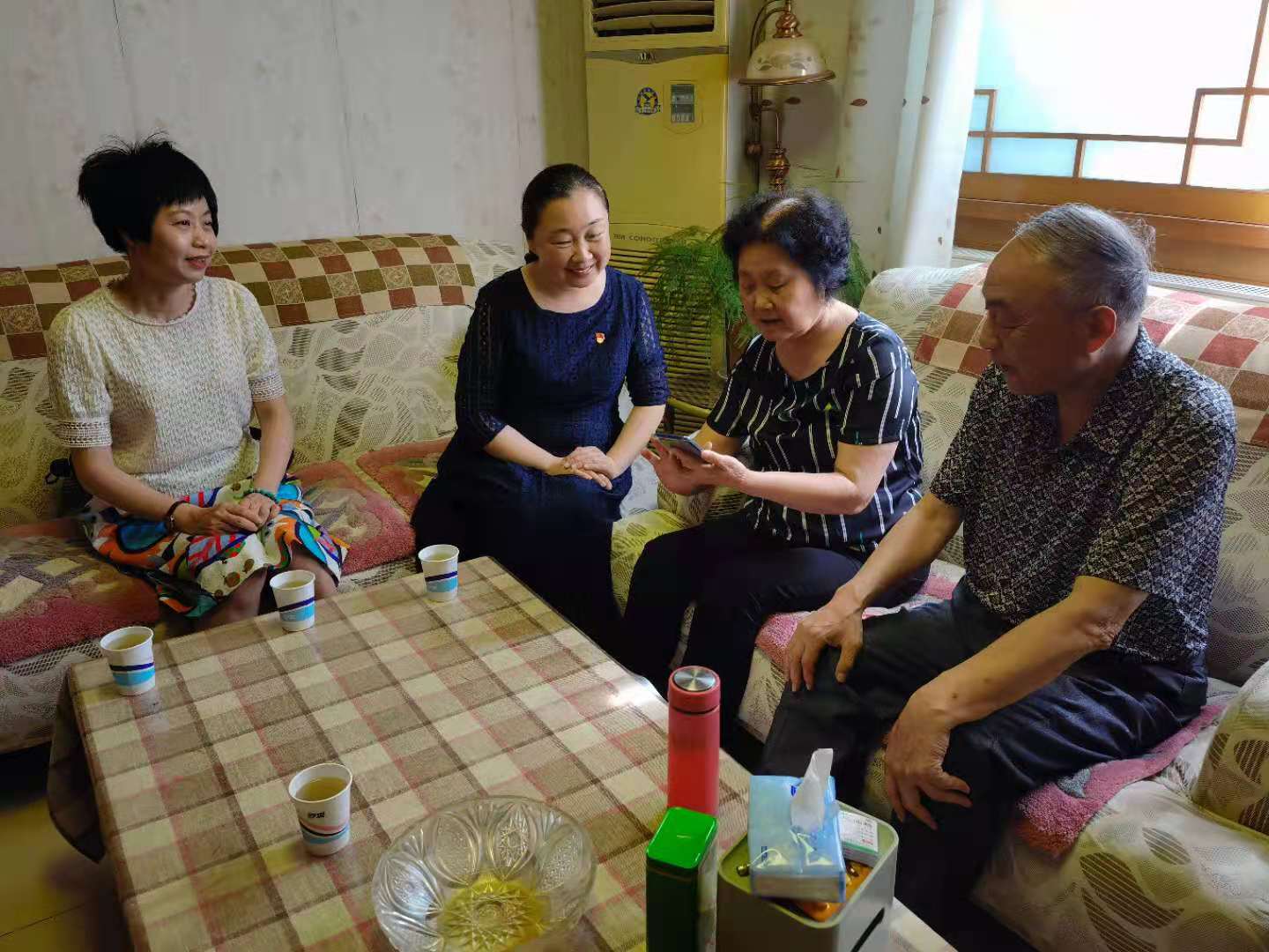 殷殷关爱,浓浓深情。为热烈庆祝建党100周年,将党史学习教育落到实处,充分体现党组织对老党员的关心关爱,传承党的光荣传统与优良作风,七一前夕,金年会诚信信誉至上学院党总支书记王虹、党总支副书记、院长陶玲带领几位党员同志看望退休老党员。