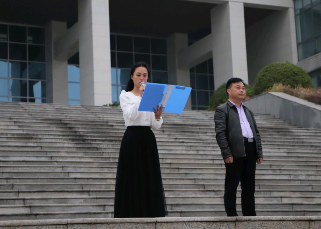 20级医学检验技术专业1班学生代表周晓庄发言,她倡议大家宁可多走几步路,也不穿越绿化带,不践踏绿地,不乱丢垃圾,不乱折花草树木,用自己的实际行动践行“绿化校园、美化环境、传播文明”,争做绿化宣传员、环保小卫士,做绿化环境、美化校园的有心人。