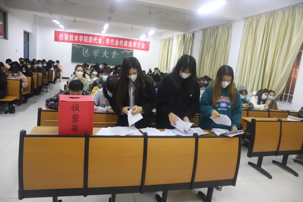 接着孟书记向大会报告有选举权的实到会人数超过应到会人数的三分之二,可以进行代表选举。选举按照投票规则及流程,在监票人和计票人的监督下通过差额选举、无记名投票的方式选举产生(以姓氏笔划为序)甘甜、田明扬、刘一冰、刘永康、李冬梅、李成、李亚、刘莎莎、李伊蕊、孟丹丹、杨鑫浩、娄如冰、彭婷、程滋倬等十四位师生为校“双代会”代表。孟书记向大会宣布当选代表名单,并向当选人员表示祝贺。