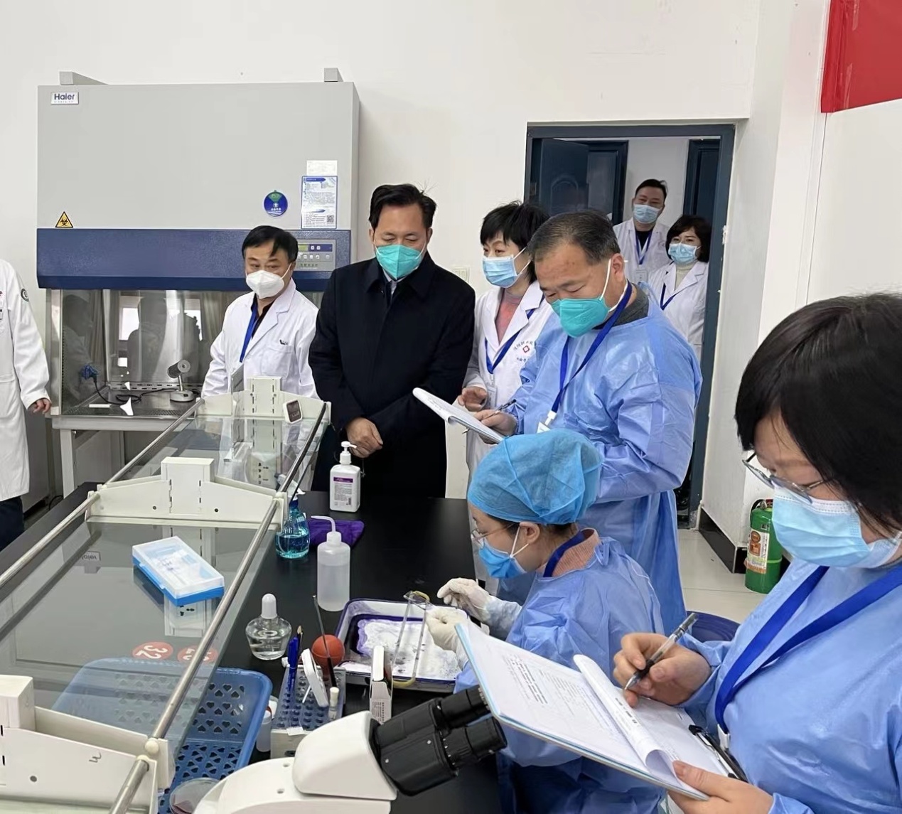 上午9时,市卫健委党组书记、主任许书动莅临金年会jinnianhuicom实操现场视察比赛情况,对市直及各县区医院选派的优秀选手表示鼓励,对各位检验人员在疫情防控救治中发挥的重要作用表示感谢,叮嘱大家超越自我、赛出佳绩。金年会jinnianhuicom教务处处长余磊、金年会诚信信誉至上院长陶玲、附属医院检验科主任马勇等人陪同视察。