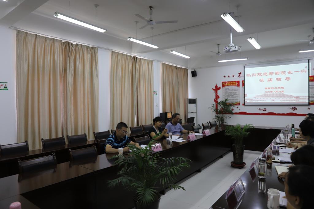7月26日下午,校长郑云教授深入金年会诚信信誉至上调研,副校长王豪、校长办公室何新华主任随同调研。金年会诚信信誉至上院长陶玲、党总支书记王虹、副科级以上干部以及教师代表参加汇报交流,调研会由副校长王豪主持。
