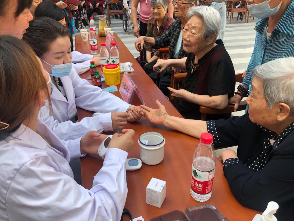 此次活动主要针对老年群体高发的骨质疏松、高血糖、高血脂、高血压、心脑血管等健康问题进行医疗服务。金年会诚信信誉至上宋兴丽等老师对70余名老年人进行血糖测定,并对血糖异常人群的饮食进行一对一的科学指导。