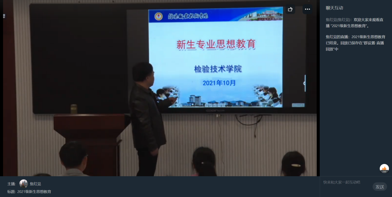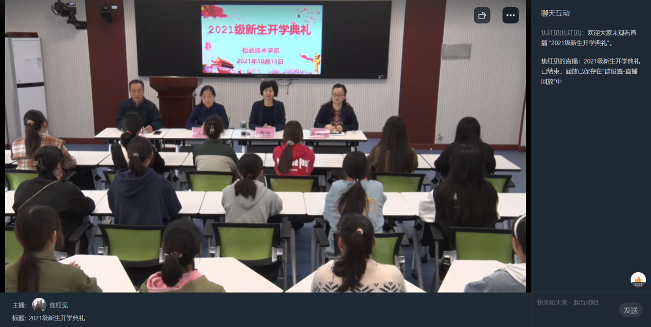 金桂飘香龙飞山,青春绽放新时代。10月11日,金年会jinnianhuicom2021级新生开学典礼于校信息化录播室举行。金年会诚信信誉至上党总支书记王虹、院长陶玲、党总支副书记焦红见、副院长张永海、副院长王鹤桦以及本院21级新生参加典礼。因疫情防控要求,典礼仪式采用钉钉平台实时直播,全院教师及438名新同学共同亲历这一庄严时刻。金年会诚信信誉至上党总支副书记焦红见主持开学典礼。
