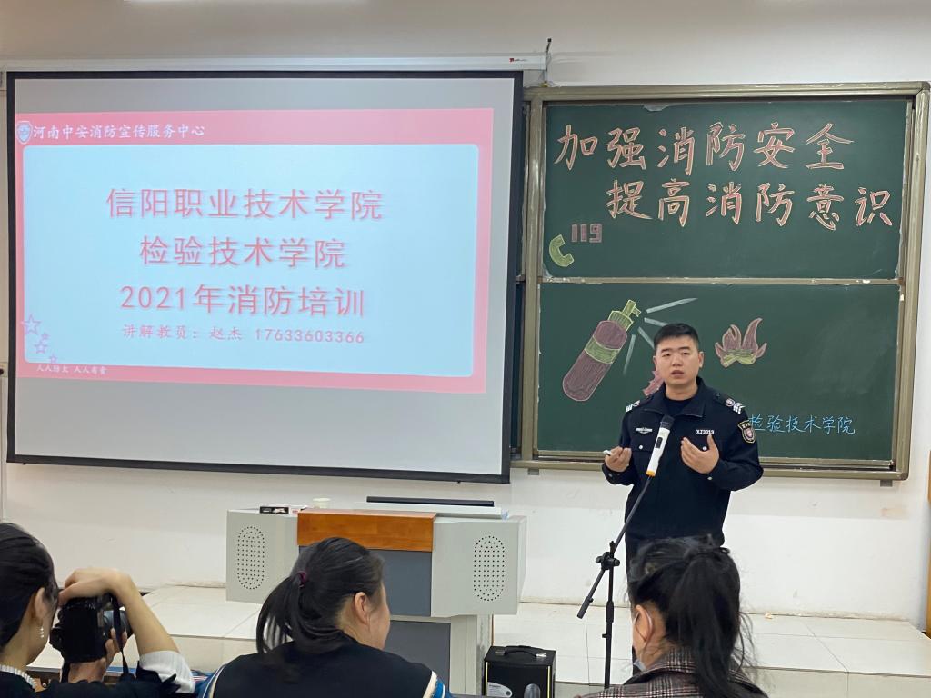 活动现场,河南省中安消防宣传中心赵杰主任教员,为金年会师生进行消防安全知识培训,他详细讲解了关于消防安全四个能力方面的内容,列举了近期全国各地发生的一起起触目惊心的火灾事例,播放了火灾事故现场的相关视频,同时传授给师生火灾中自救逃生的基本技能。