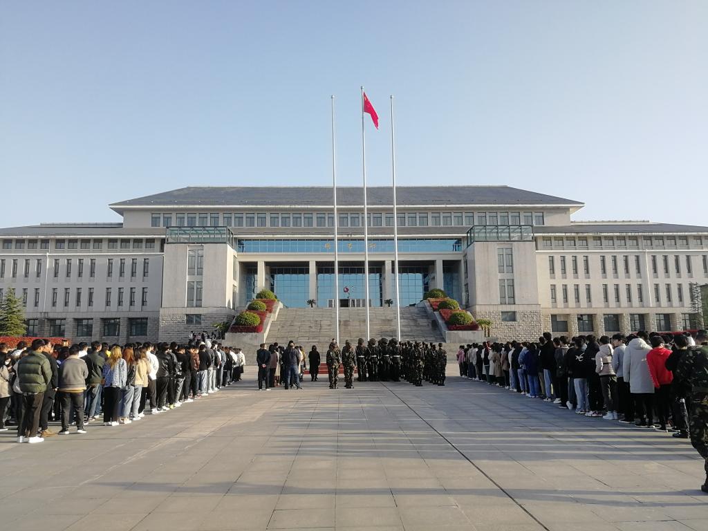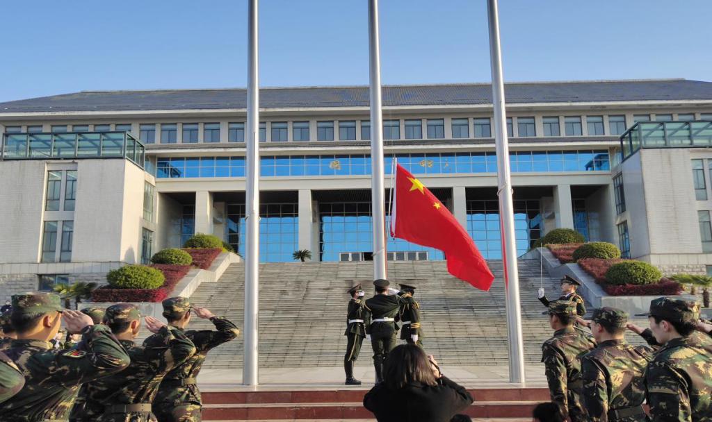 7时20分,国旗护卫队队员迈着整齐的步伐向升旗台健步走来,伴随着雄壮的《义勇军进行曲》,鲜艳的五星红旗冉冉升起,全院师生高唱国歌,面向国旗行注目礼,为伟大祖国送上深情祝福。