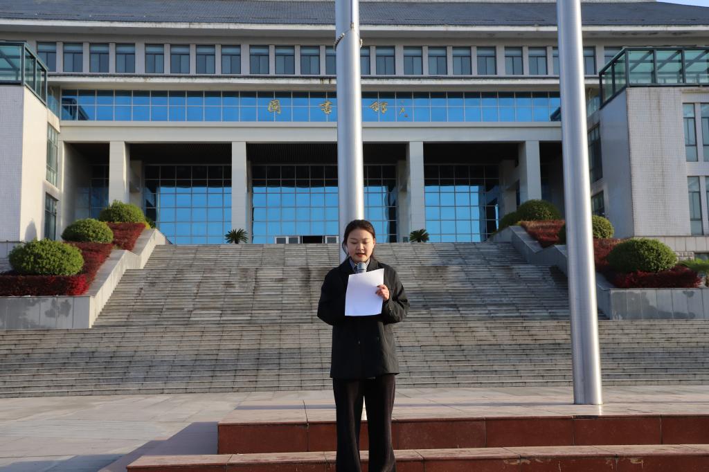 国歌奏毕,19级检验3、4班学生王璐瑶作为学生代表发言,她号召同学们从身边小事做起,践行雷锋精神。同时,呼吁同学们要始终坚定贯彻刻苦钻研、求真务实的精神,积极行动、脚踏实地,发愤为祖国成才,用自信迎接困难挑战,用勤奋书写无悔青春。