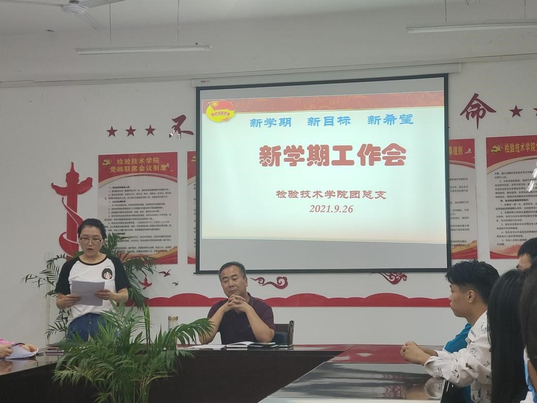 2021年9月26日晚7点,金年会诚信信誉至上学院团总支在9412会议室召开了新学期工作会,金年会诚信信誉至上团总支全体团干部、团支部书记、21级新生代理团干部参加了此次会议。会议由金年会诚信信誉至上团总支书记孟丹丹主持,金年会诚信信誉至上学院党总支副书记焦红见、金年会诚信信誉至上团总支指导老师康梦叶应邀参加了会议。