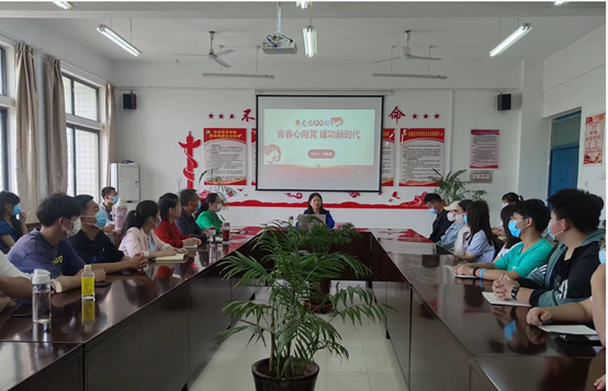 为庆祝建团100周年,巩固拓展党史学习教育成果,同时学习贯彻落实习近平总书记在庆祝中国共产主义青年团成立100周年大会上的重要讲话精神,引导广大青年坚定理想信念,勇担时代使命,5月17日下午,学校党委委员、副校长李新毓到金年会诚信信誉至上党员活动室上主题团课。本次团课的主题为“青春心向党 建功新时代”,金年会诚信信誉至上党总支书记王虹、党总支副书记焦红见、学生党支部书记王鹤桦、团总支书记孟丹丹及金年会诚信信誉至上各团支部书记、入党积极分子代表、体育学院优秀团员代表参加了学习。
