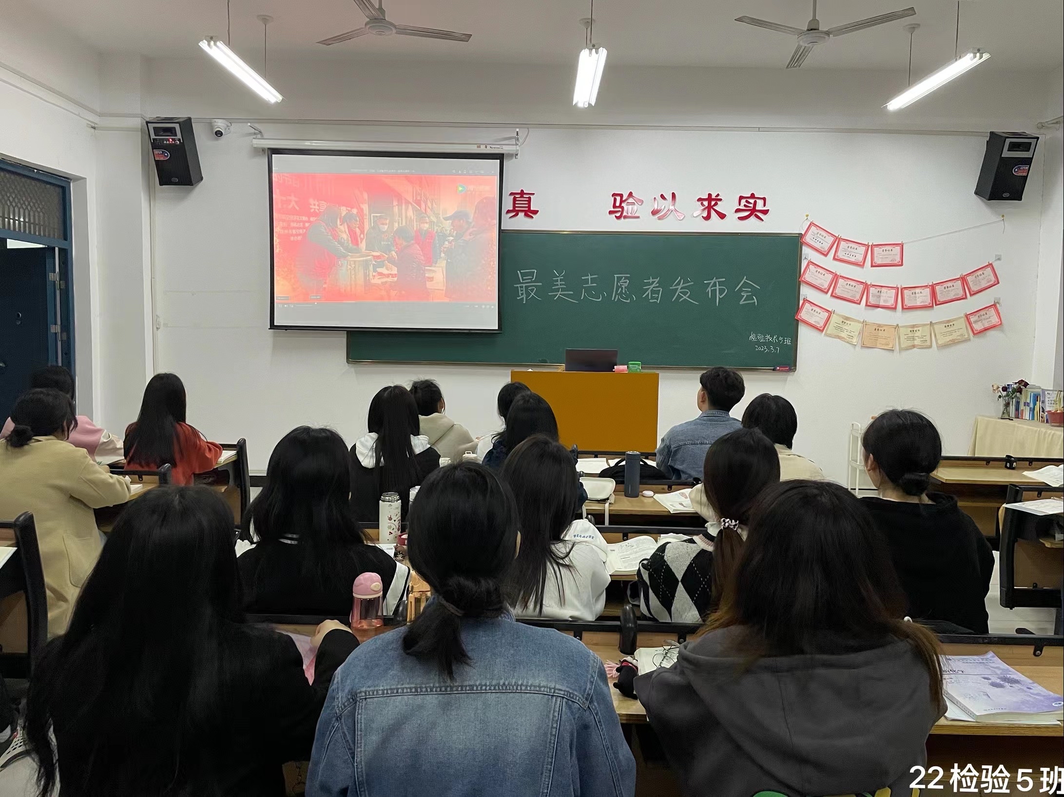 整场发布仪式,感动无处不在。视频短片向大家展现了志愿者们热心公益事业,不断投身志愿服务、无私奉献的精神。这22位“最美志愿者“以平凡无私之举诠释着雷锋精神人人可学、奉献爱心处处可为的时代价值。22级检验五班团支部的青年团员们通过观看志愿者服务的先进典型事迹后感慨道:今后要积极宣传、立志向这22位最美志愿者学习,用实际行动感染带动更多人向上向善,以她们为前进的动力,努力践行雷锋精神,承担社会责任,爱心奉献社会。