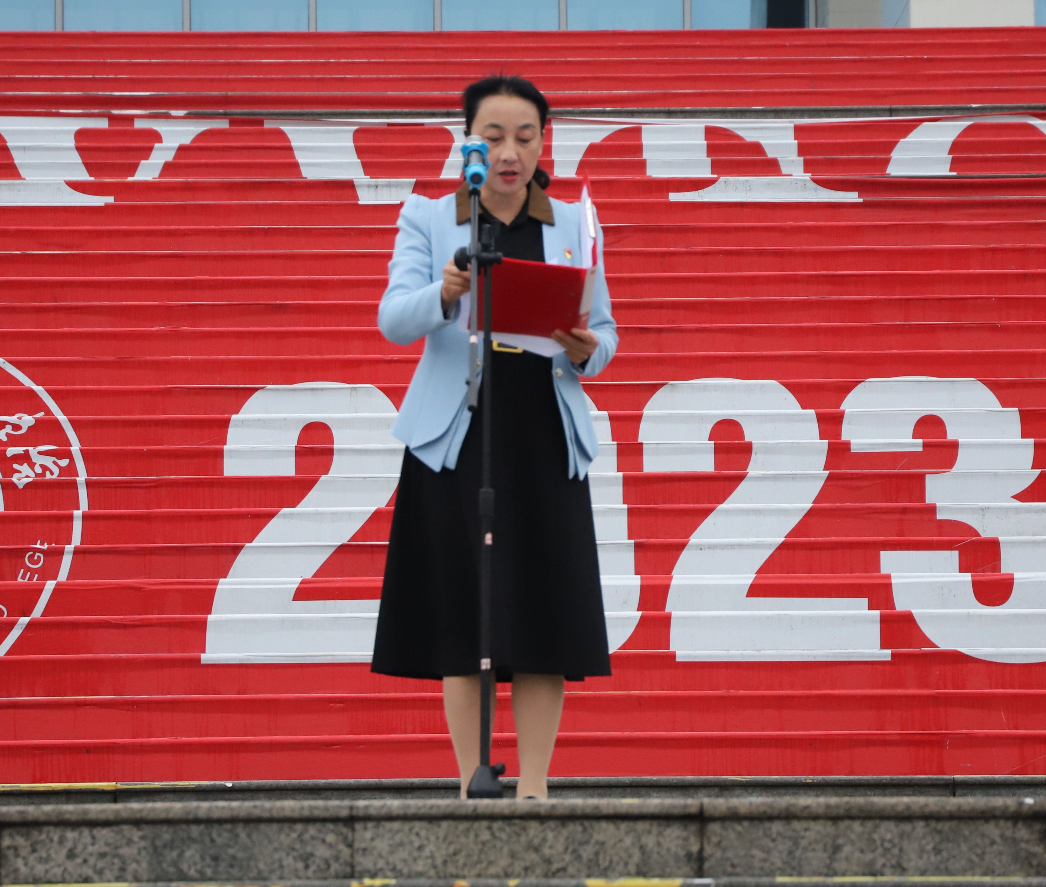 金年会诚信信誉至上党总支书记叶桦在国旗下讲话。叶书记要求我们厚植爱国主义情怀,踔厉奋进,奋发图强!并对全院学生提出殷切希望,希望同学们有坚定的理想信念、有担当作为的闯劲、有吃苦耐劳的精神和团结奋斗的品质。