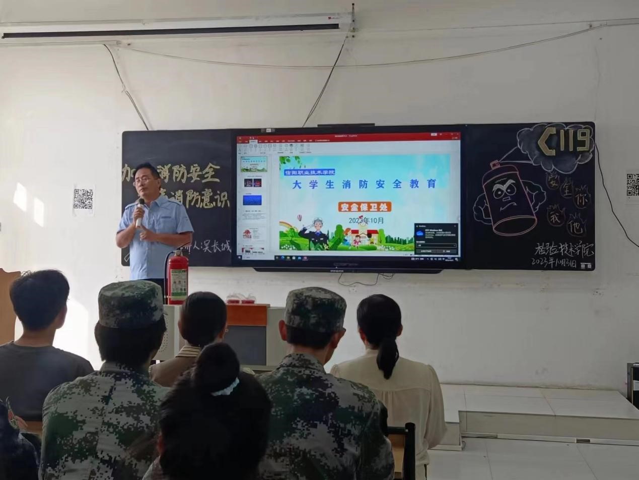 吴科长首先进行消防安全知识培训,详细讲解了校园、宿舍着火的事例,通过这些事例普及消防安全知识以及安全逃生的基本技能以及面对突发火灾时如何应对的措施和方法。