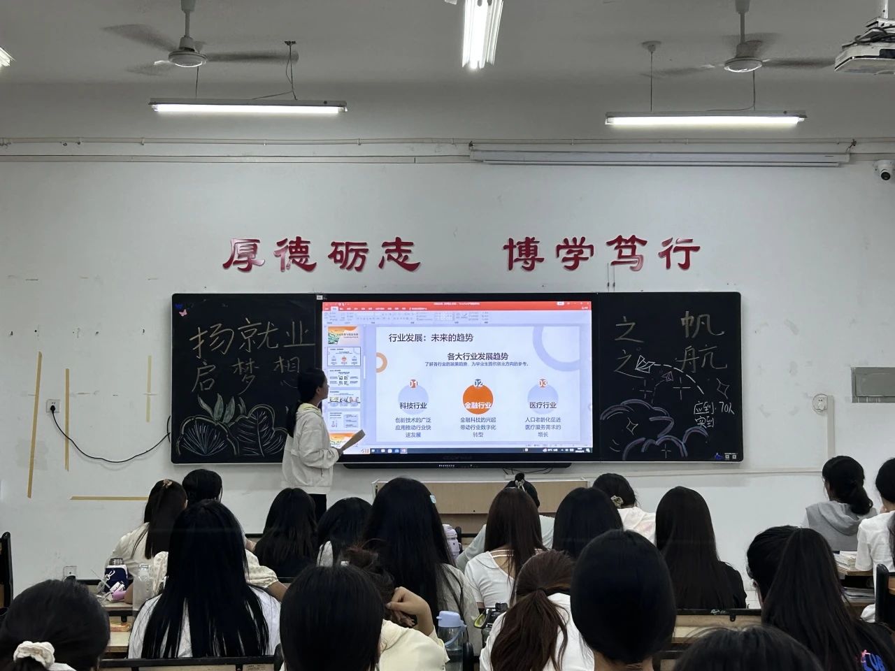 活动伊始,金年会诚信信誉至上心理权益部组织各班召开“扬就业之帆·启梦想之航”主题班会,通过板报设计、就业短片播放、毕业生就业政策宣读、畅享职业规划等环节,引导同学们了解当前就业形势,树立正确的就业观、择业观。会后,心理权益部鼓励大家积极报名“扬帆青春·梦筑心航”心理素质拓展活动。