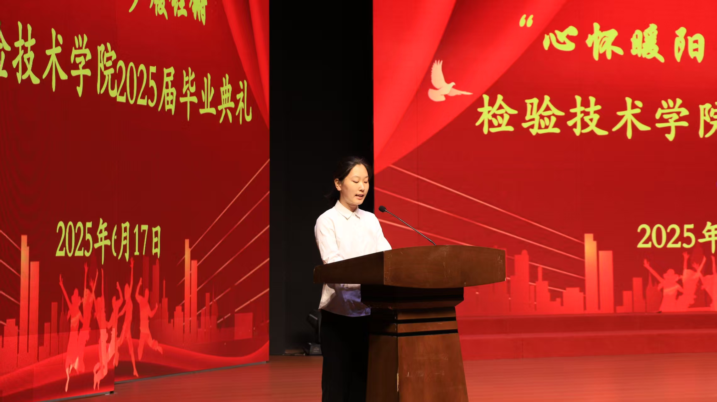 毕业生代表刘金萍同学表达了对母校的深深留恋与感恩之情,表示将以实际行动回报母校的辛勤培养,鼓励同学们抓住机遇,做好规划,努力提升自我。