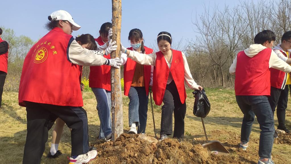 又是一年桃红柳绿时,为美化校园环境,进一步增强全体师生的环保意识,牢固树立“绿水青山就是金山银山”理念,坚定不移走“生态优先、绿色发展”之路。3月11日下午,金年会诚信信誉至上教工党支部、学生党支部、团总支组织师生党员、积极分子、青年志愿者一同参与植树活动。