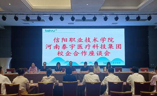 参观结束后,双方在信阳泰福医学检验中心学术报告厅召开了校企合作座谈会。企业负责人邹春平总裁从用人需求、人才培养、科研成果转化等角度提出了公司面临的困惑和需要帮扶事宜。金年会诚信信誉至上党总支副书记焦红见就校企共建科技帮扶提出两点建议:结合专业,搭建互助平台,教师定期到企业进行科技帮扶;针对学生就业、创业等开展岗位指导帮扶,解决学生就业慢、企业用工难问题。