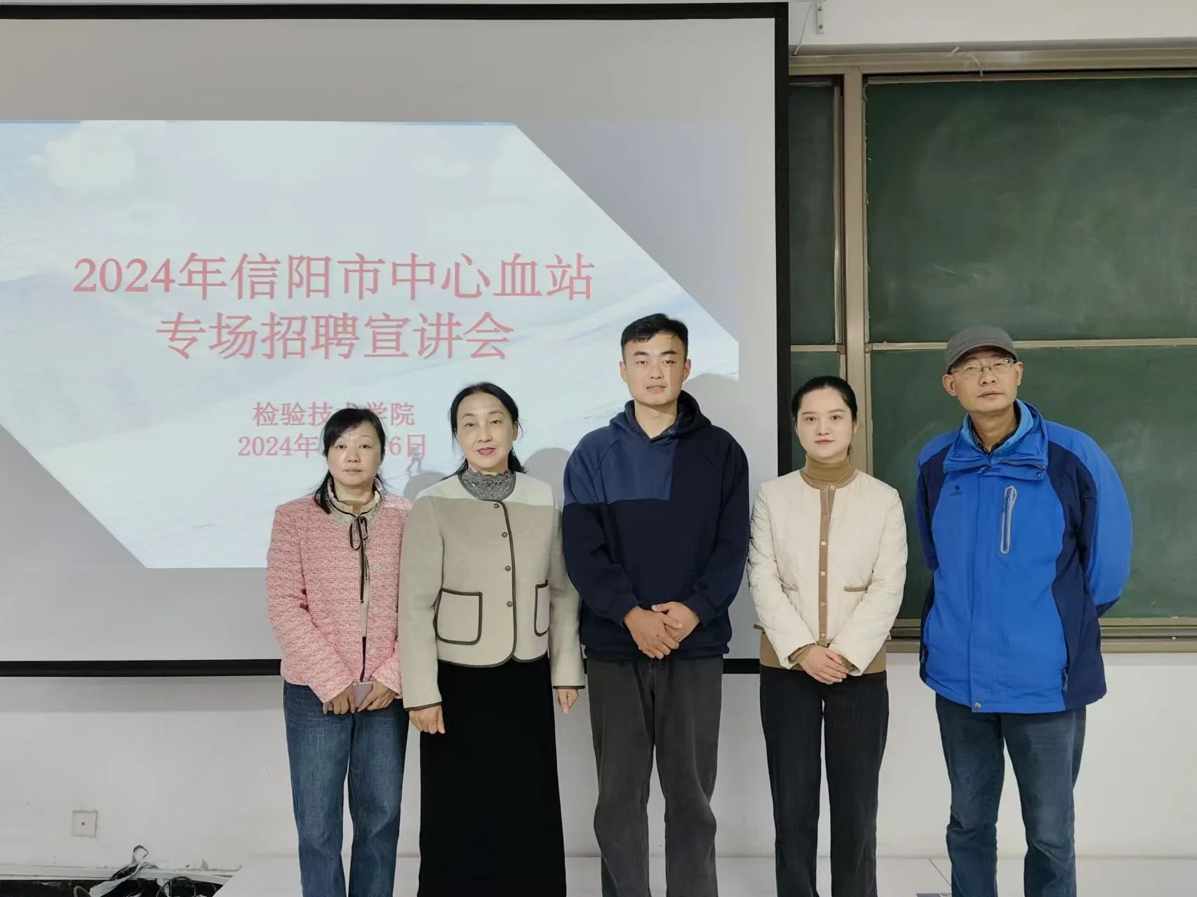 信阳市中心血站工作人员董俊涛宣传介绍了血站的发展历程、基本情况、发展前景以及无偿献血的重要意义,欢迎同学们积极参加单位实习和就业招聘,投身到信阳市中心血站的建设发展中来。