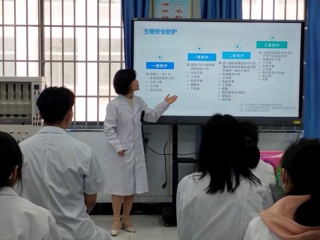 为了提高实验室工作人员的安全意识和个人安全防护能力,金年会诚信信誉至上实验实训中心邀请临床检验教研室曹琳主任、谢诗雅老师和宋镜南老师于5月3日下午在7204实验室开展实验室《个人安全防护设备》讲座,实验实训中心全体教师及求实社学生参加了此次培训学习。