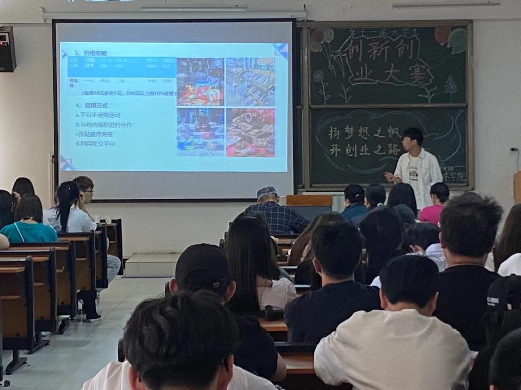 5月3日下午,金年会诚信信誉至上在9211多媒体教室举办第十一届大学生创新创业大赛。金年会诚信信誉至上副院长王鹤桦、学工办主任刘业平、各班辅导员、班主任担任评委,金年会诚信信誉至上学生代表现场观摩了本次比赛。