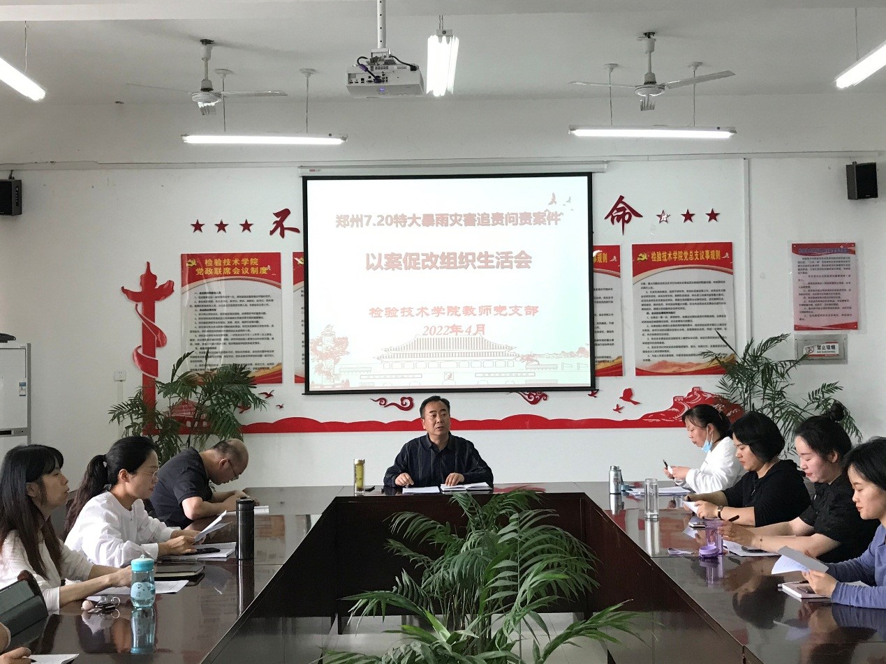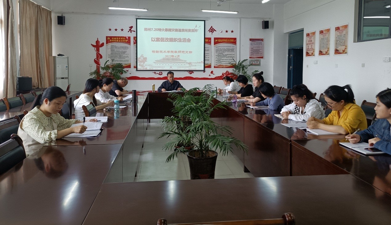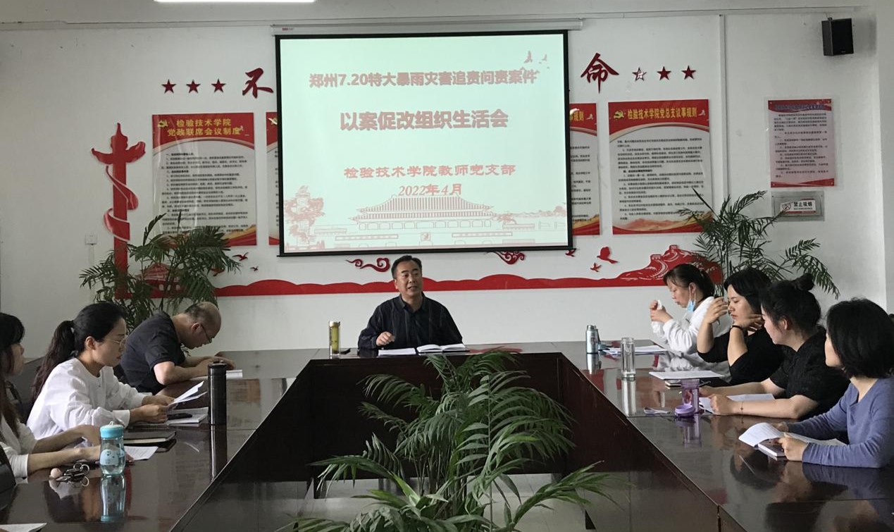 会上,教工党支部副书记宋兴丽领学了《中共金年会jinnianhuicom委员会召开郑州“7.20”特大暴雨灾害追责问责案件以案促改专题组织生活会的通知》,全体党员教师对照自身岗位职责,逐一开展检查,深入查摆个人存在的问题,认真剖析产生问题的根源,明确今后努力方向,并相互开展批评与自我批评。