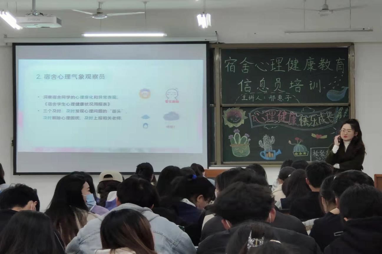 3月31日,金年会诚信信誉至上邀请学校学生处心理健康中心邢惠子老师在9211教室开展宿舍心理健康教育信息员培训,21级全体寝室长参加了培训。